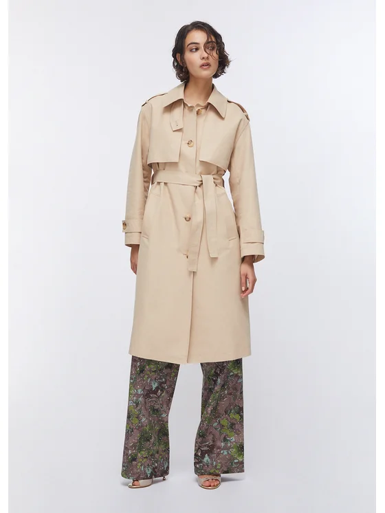 Rieditato in chiave city-chic, questo trench è pronto ad accompagnarti negli appuntamenti day & night. Realizzato in gabardine con bavolette e alamari, sorprende per la cintura foulard che spicca sul modello monocromo.