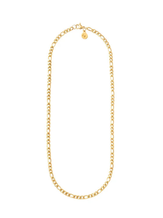 Collana elegante che, grazie alla sua maglia spessa, tra le appassionate di gioielli è conosciuta come “pancerka”. Si distingue per l’alternanza regolare di maglie più piccole e più grandi. I gioielli Love and Hate, realizzati in acciaio chirurgico placcato oro di altissima qualità, sono ipoallergenici. Non cambiano aspetto a contatto con l’acqua e sono resistenti all’usura. Completa con stile gli outfit da uscita e aggiunge carattere a quelli quotidiani. La collana si abbina perfettamente al bracciale della stessa linea, creando un set raffinato. La consigliamo anche come regalo. I gioielli Love and Hate sono confezionati in eleganti scatole decorative, adatte anche per la conservazione. Lunghezza della collana: 40 cm, con prolunga fino a 45 cm.
