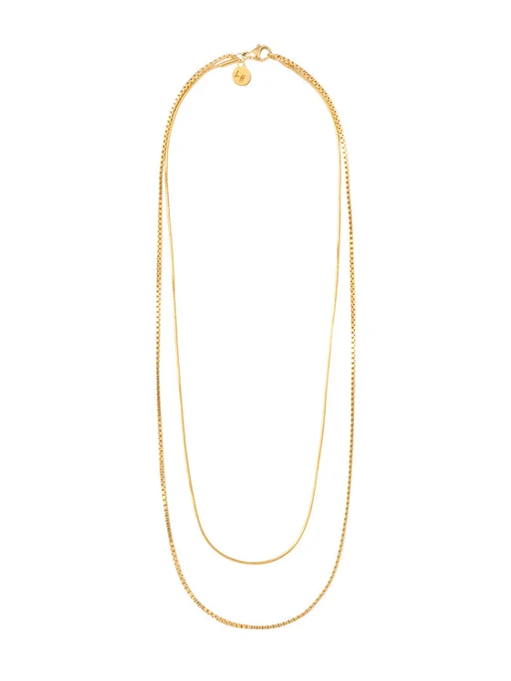 Collana doppia realizzata in acciaio chirurgico placcato oro, ipoallergenica e priva di nichel. La collana più corta ha una lunghezza di 38 cm, mentre quella più lunga misura 42 cm. Si abbina perfettamente al nostro bracciale della stessa linea.