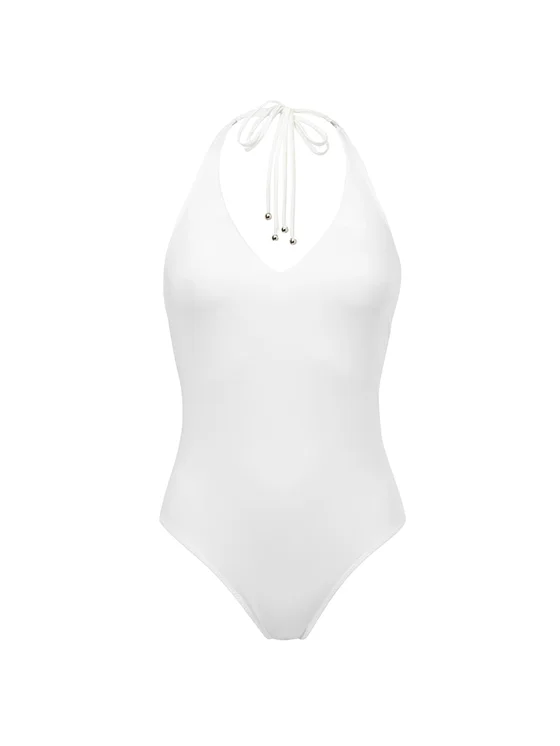 Semplice, minimalista ed elegante. Il costume intero nero Morea presenta uno scollo chiuso che copre il seno in modo sexy. Legato al collo, è il modello più alla moda della stagione, con una schiena scoperta molto stilosa e un taglio alto sui fianchi che allunga le gambe. Può essere utilizzato anche come body per look estivi.
