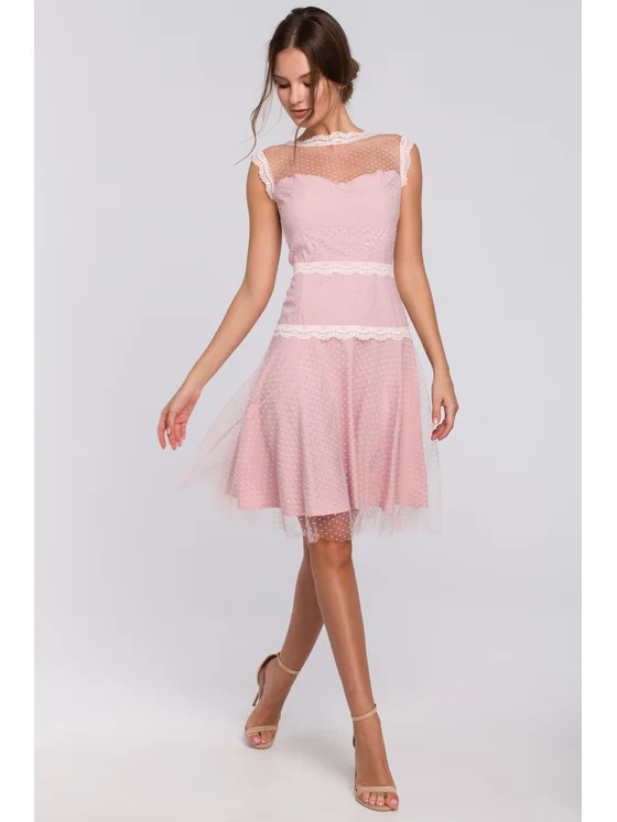 Un abito affascinante, ricco di dettagli. Realizzato in rete nera traslucida con punti intrecciati e sottili inserti in pizzo. Adeguato alla linea dei fianchi, slancia la silhouette in modo splendido. Il retro trasparente è fenomenale!