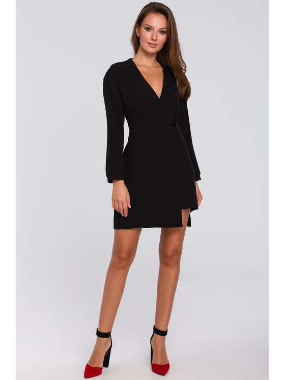 Abito sovrapposto dalla forma asimmetrica. Il top a busta con spalle nettamente scese è stato accostato alla parte inferiore, il cui lato più corto espone splendidamente la gamba. Cattura l'attenzione fin dal primo sguardo!