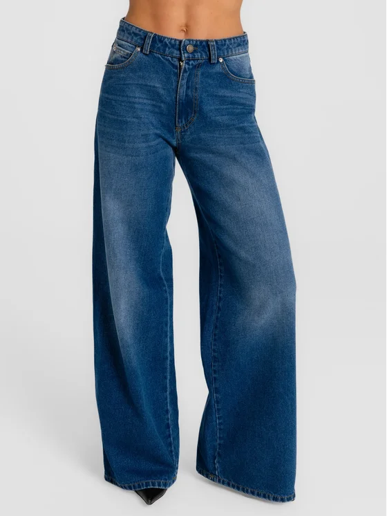 Jeans a gamba ampia, vita leggermente alta e linea dritta. Realizzati in morbido tessuto di cotone. Il taglio classico garantisce versatilità senza tempo. Chiusura con bottone e zip. Le tasche funzionali mantengono l’aspetto tradizionale del denim. Rifiniti con rivetti decorativi. Un modello che assicura durata e comfort. Realizzati e progettati in Polonia. La modella è alta 173 cm e indossa la taglia XS/S.