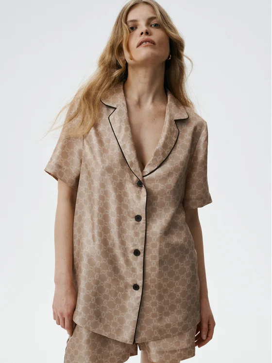 Blusa in seta con profilo a contrasto sul davanti e sul colletto. Linea semplice ed elegante, valorizzata da dettagli delicati. Raffinata nella forma, senza tempo nello stile. Ideale sia per il giorno che per la sera.
