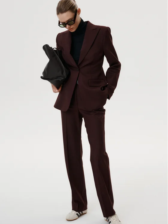 Blazer aderente realizzato in lana di alta qualità con un tocco di elastan. Grazie a questi materiali, la giacca si adatta alla silhouette mantenendo al tempo stesso la massima libertà di movimento. I revers a lancia e il colletto le conferiscono un carattere classico ed elegante. Le tasche con patta sono un dettaglio discreto che aggiunge stile e funzionalità, mentre lo spacco posteriore garantisce comfort e una perfetta vestibilità durante la camminata. Foderata con MONOGRAM M.