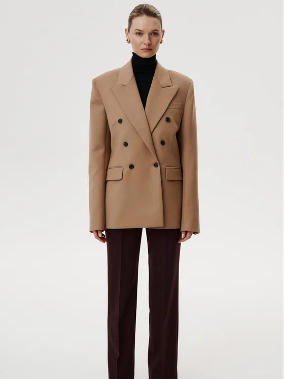 Blazer doppiopetto realizzato in lana pregiata. Il modello SOVANA si distingue per l’ampio revers e la forma leggermente oversize. Dispone di tasche con patta e maniche con spacco chiuse da bottoni. Il taglio accurato valorizza la silhouette, garantendo al tempo stesso il massimo comfort.