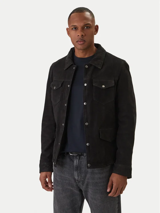 Giacca di pelle Valerio 612205 60790 Nero Slim Fit