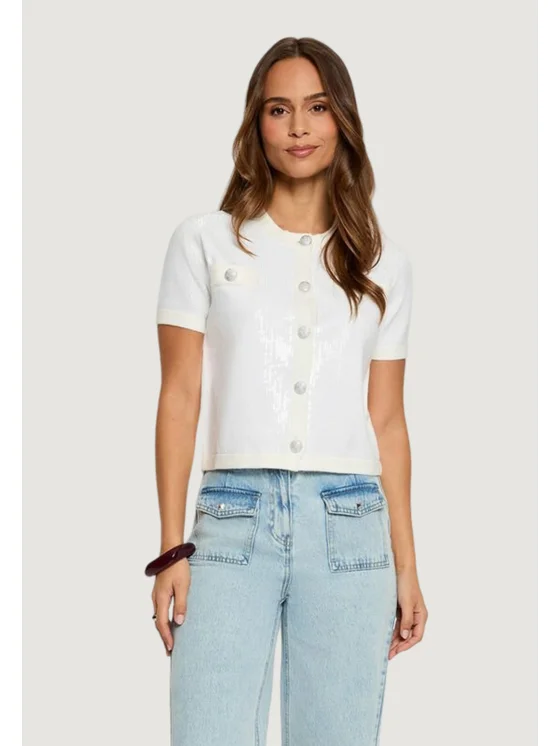 Questa maglia in filo firmata Morgan De Toi, modello 251-MSEKIN, è la scelta perfetta per chi cerca uno stile elegante e contemporaneo. Realizzata con una composizione di 50% viscosa sostenibile, 28% poliestere e 22% poliammide, assicura comfort, leggerezza e rispetto per l'ambiente. Il design a manica corta, valorizzato da una linea cropped e bottoni frontali effetto gioiello, aggiunge un tocco raffinato e moderno al capo. Il colletto tondo e le taschine applicate sul petto rendono questa maglia ideale sia per outfit casual sia per abbinamenti più ricercati nelle mezze stagioni. Perfetta da indossare con jeans o pantaloni a vita alta per un look fresco e sofisticato.
