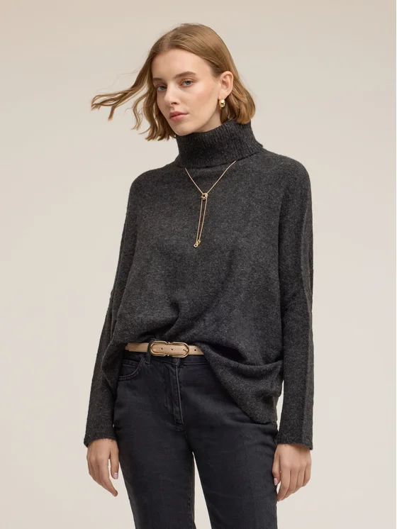Maglia in filato misto lana; vestibilità over, lunghezza media; scollatura a dolcevita, maniche lunghe.