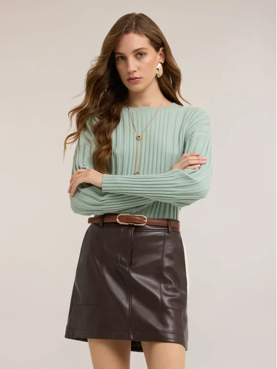 Maglia con lavorazione a coste; vestibilità slim; scollatura girocollo, maniche lunghe.