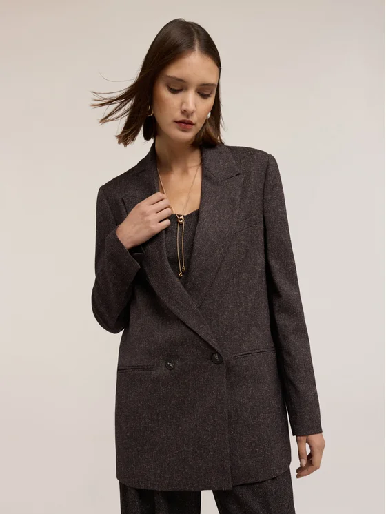 Giacca strutturata in tessuto tinto filo di poliviscosa; modello a vestibilità over, completamente foderata e chiusura a bottoni; maniche lunghe, tasche a filetto frontali.; MADE IN ITALY.