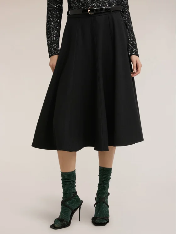 Gonna midi linea ad "A" in panno misto lana; chiusura con zip; vita alta.