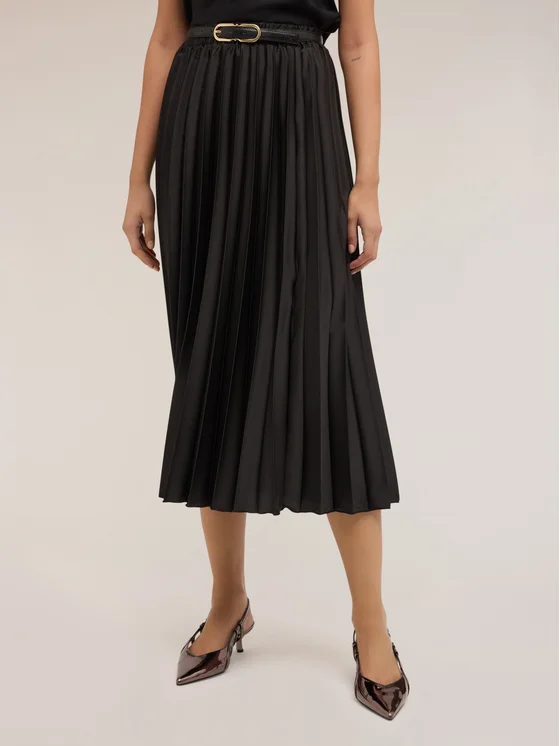 Gonna midi in raso satin; lavorazione plissé; vita stretch con elastico interno