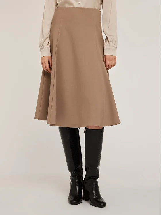 Gonna a teli svasata in poliviscosa tinta unita; modello a mezza ruota lunghezza midi; chiusura con zip sul fianco
