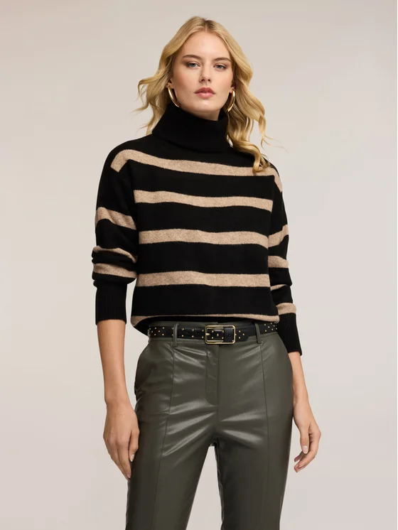 Maglia in filato misto viscosa a righe; modello dolcevita con vestibilità regular; maniche lunghe con polsini a coste.
