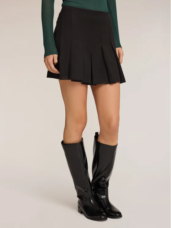 Gonna corta in poliviscosa; chiusura a zip; lavorazione plissé; MADE IN ITALY.