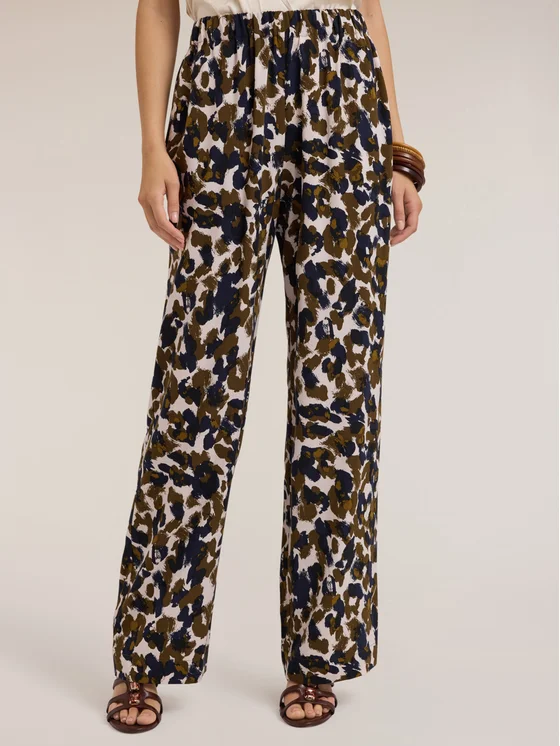 Pantaloni misto lyocell fantasia etnica; gamba larga; vita stretch con elastico interno
