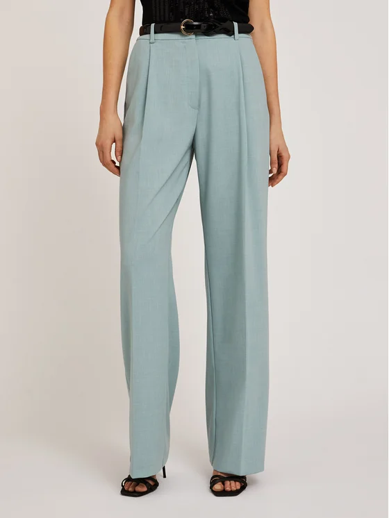Pantaloni palazzo con pieghe in poliviscosa; apertura frontale con gancetto e zip nascoste; tasche all'americana inserite nel fianco