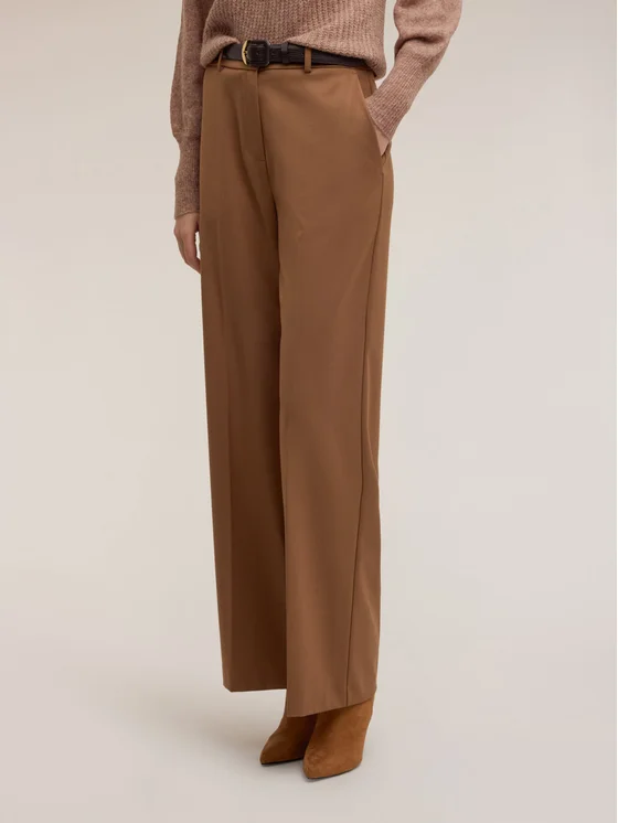 Pantalone palazzo in poliviscosa con piega stirata; chiusura frontale sartoriale; tasche all'americana inserite nei fianchi; MADE IN ITALY.