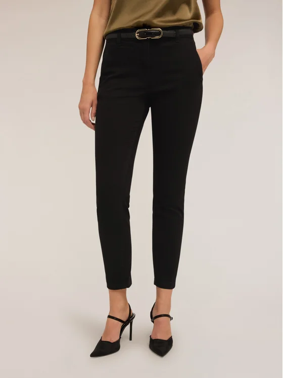 Pantaloni chino modello Kendall in drill di cotone tinto capo; apertura frontale con bottone e zip; tasche all'americana inserite nel fianco