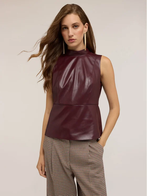 Top in tessuto spalmato; collo alto alla coreana con chiusura a zip nel centro dietro; spalla larga, tagli shaping