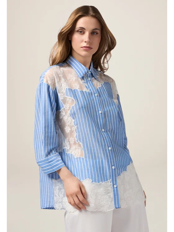 Oltre Camicia 5180J000728N0R4 Turchese Baggy Fit