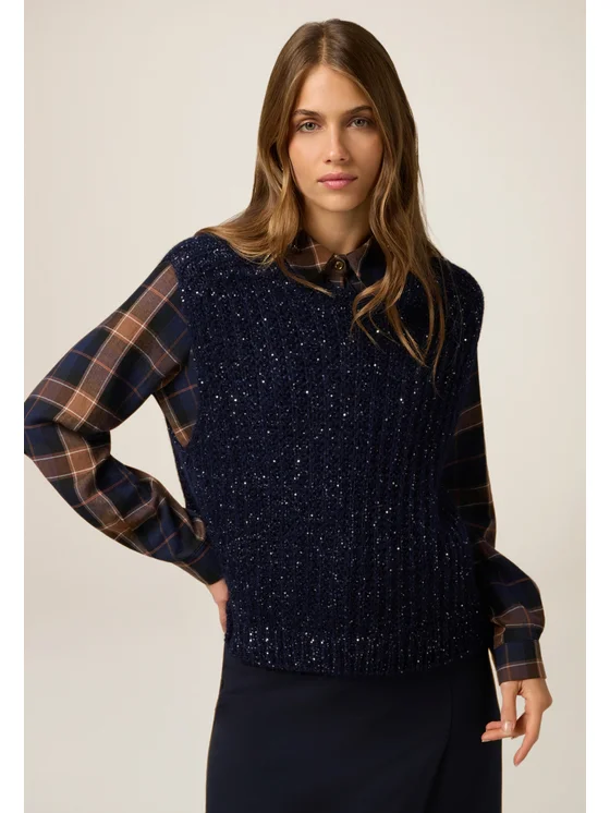Maglia senza maniche realizzata in cado filato misto mohair; scollatura tonda, ricamo in micro paillettes; MADE IN ITALY.