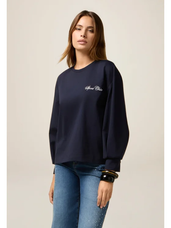 Felpa con scollatura tonda e maniche lunghe realizzata in jersey misto cotone; ricamo lettering davanti; possibilità di abbinarli alla felpa coordinata; MADE IN ITALY.