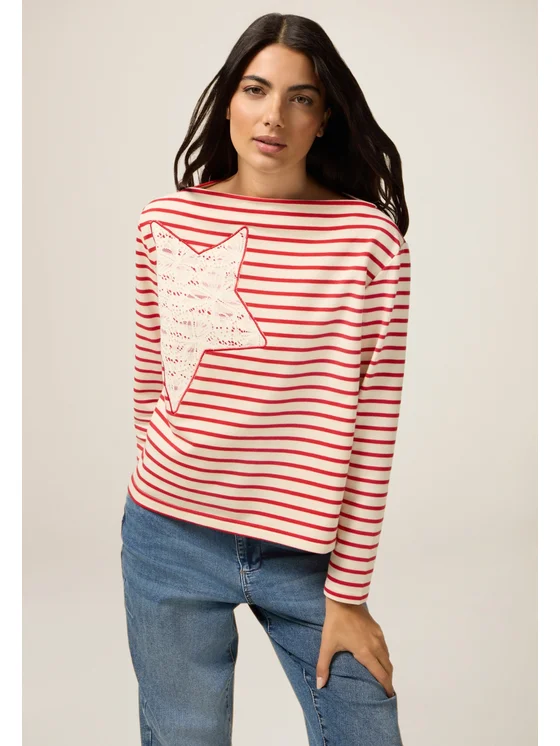 Felpa realizzata in jersey misto cotone; applicazione decorativa con pizzo, sul davanti; MADE IN ITALY.