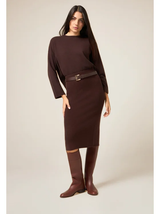 Gonna tubino realizzata in filato 100% lana; lunghezza midi con vestibilità slim; spacco posteriore sul fondo e possibilità di abbinarla alle maglie coordinate.