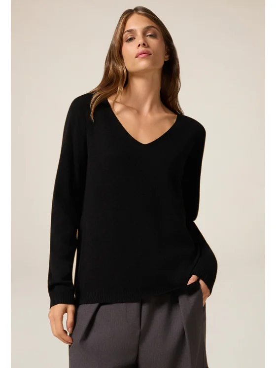 Maglia realizzata in filato misto viscosa; scollatura a V; maniche lunghe.; MADE IN ITALY.