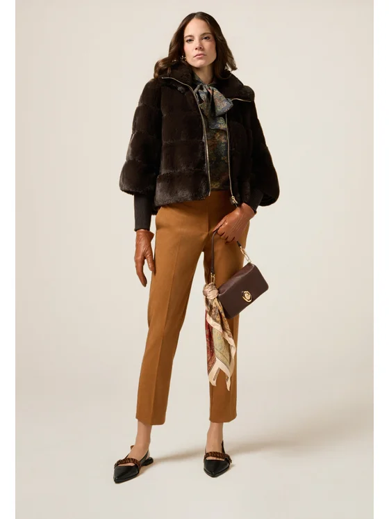 Pantaloni realizzati in fustagno; chiusura con zip e bottone decorativo in vita; piega stirata lungo le gambe.
