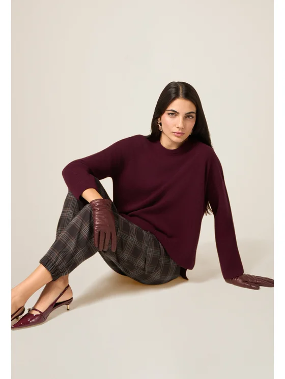 Pantaloni cargo realizzati in tessuto check misto viscosa; tasca cargo laterale; vita elasticizzata internamente.