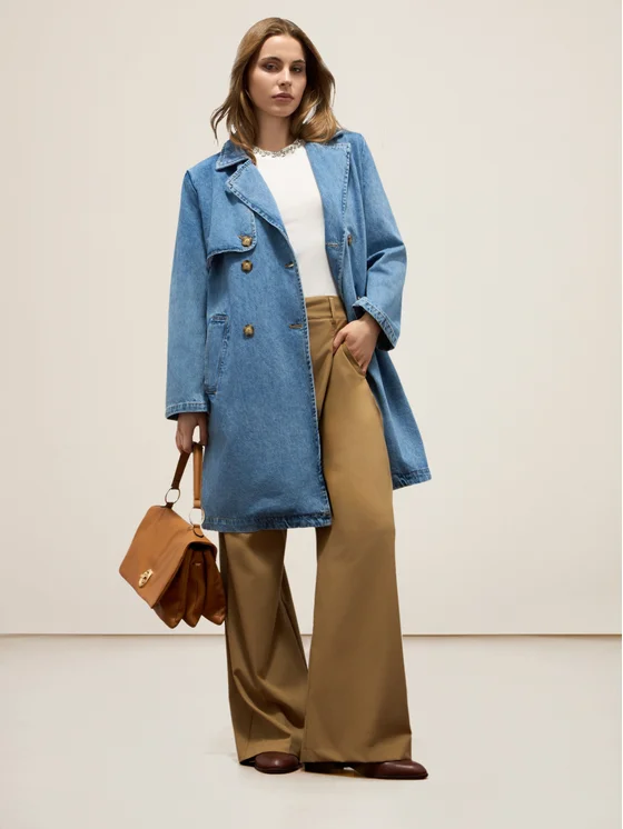 Pantaloni palazzo realizzati in tessuto fluido; gamba larga; dettaglio di pince sulla parte alta, tasche laterali inserite nei fianchi; MADE IN ITALY.
