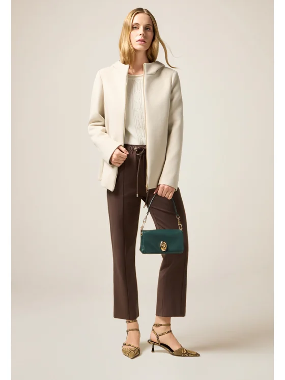 Pantaloni joggers realizzati in consistente jersey punto milano misto cotone; vestibilità comoda con vita elasticizzata e coulisse regolabile con occhielli metallici; tasche laterali inserite nei fianchi, gamba dritta con orlo alla caviglia; MADE IN ITALY.