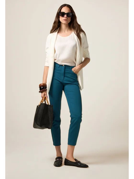 Pantaloni di tessuto P710R008476N024 Turchese Slim Fit