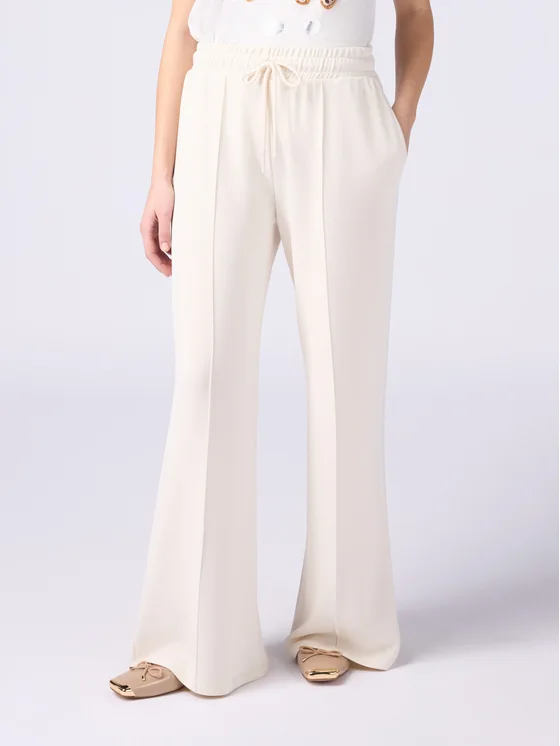 Joggers realizzati in fluido jersey soft touch; wide leg, nervature lungo le gambe, tasche all'americana e vita elasticizzata internamente con coulisse; possibilità di abbinarli alla felpa coordinata; MADE IN ITALY.
