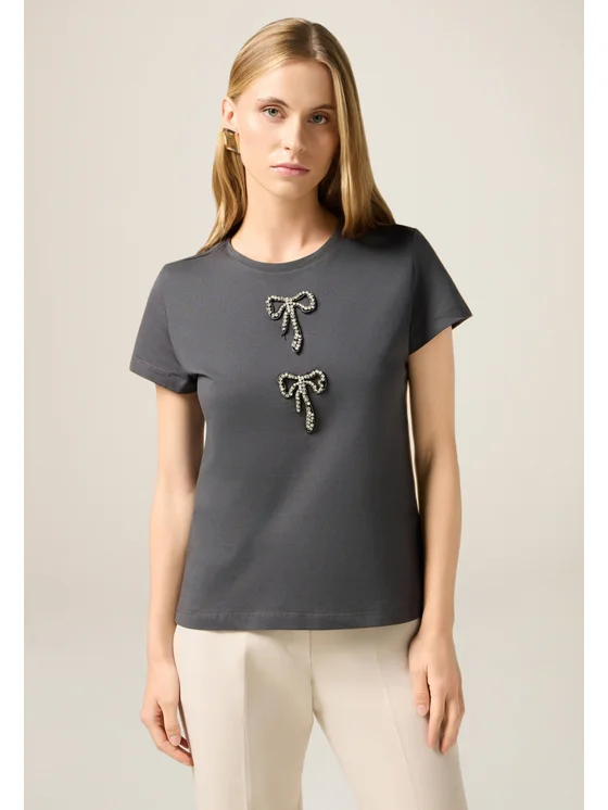 T-shirt realizzata in jersey di cotone; vestibilità regolare con applicazioni decorative sul davanti; maniche corte e scollatura girocollo; MADE IN ITALY.