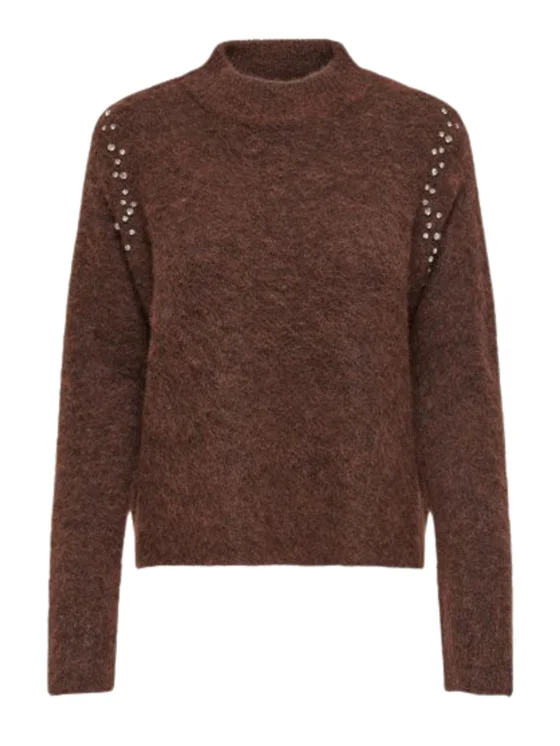 ONLY Maglione Onlrinalife ls rhinestone Marrone Regular Fit