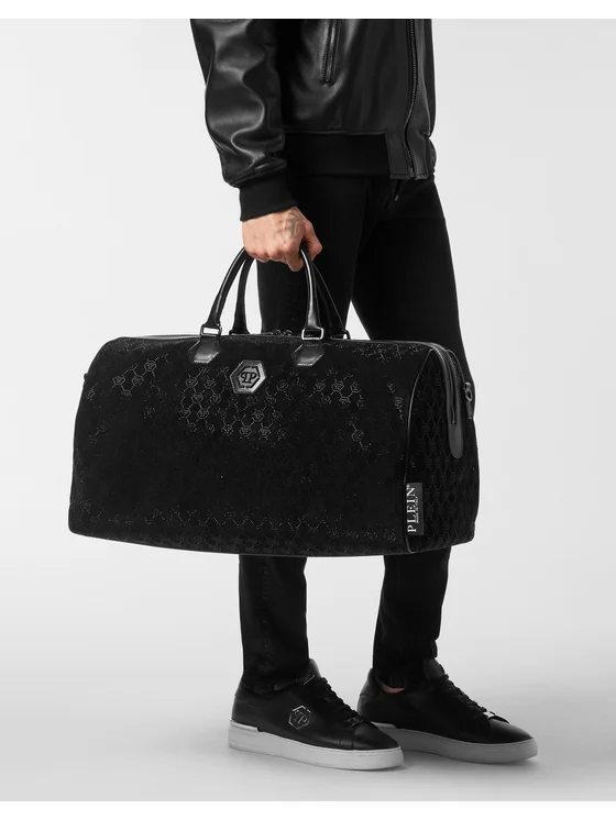 Personalizza i tuoi viaggi con l'originalità del nuovo borsone a bauletto di pelle con particolari... brillanti. Pelle con Monogram in cristalli stampato all over Dettagli di pelle spazzolata Patch con logo Doppio manico tubolare Apertura principale regolata da zip Predisposizione per tracolla Interno con tasca con zip Fodera di tessuto