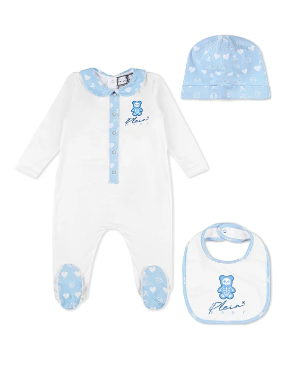 Questo set per bambini combina la praticità di tutti i giorni con lo stile raffinato di Plein Kids, offrendo morbidezza e comfort per i guardaroba dei più piccoli. Una scelta ideale sia per l'uso quotidiano che come regalo di lusso. Set completo comprensivo di body, cuffietta e bavaglino Tessuto in puro cotone delicato sulla pelle delicata Finiture elasticizzate per garantire flessibilità e comfort Design facile da indossare che garantisce praticità ai genitori Il marchio della firma aggiunge una finitura raffinata