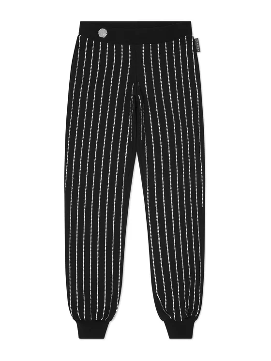 Definisci il tuo stile con una nota di personalità. Guarda questi pantaloni jogging realizzati in felpa e impreziosita da dettagli originali. Tessuto in morbida felpa di cotone Il capo è illuminato da applicazioni di cristalli con motivo a righe PP Hexagon cucito sul cinturino Due tasche a filetto Cinturino e fondo gamba smacchinati a costina