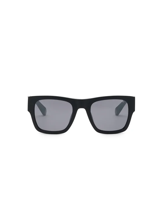 Scopri il modello di occhiale da sole destinato a diventare iconico. Montatura di acetato color nero opaco Aste di acetato caratterizzate da PP Hexagon dorato Lenti grigio scuro Protezione 100% UVA