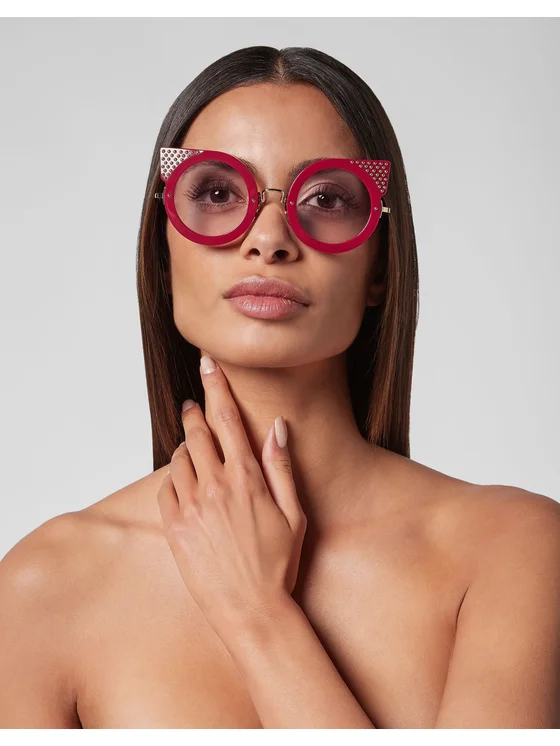 Montatura: Lenti in acetato lampone Aste: Metallo dorato Colore lente: lampone chiaro Protezione totale dai raggi UVA|UVB Realizzato in Italia Compatibile con lenti da vista Dimensioni (mm): 50x140 Donna Una reinterpretazione moderna dell'"occhio di gatto" produce un paio di occhiali con montatura rotonda in acetato impreziosita da piccoli borchie. Anche le aste in metallo hanno le punte in acetato.