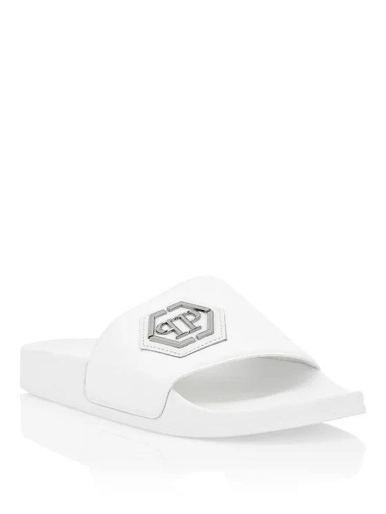 Questi sandali gommosi ridefiniscono l'abbigliamento casual con un atteggiamento elegante e moderno, offrendo comfort e stile per look quotidiani senza sforzo. Dettaglio in pelle di vitello aggiunge un tocco di lusso raffinato Bold firma emblema esalta il design contemporaneo Struttura leggera assicura facilità e comfort Suola resistente costruita per usura versatile all'interno e all'esterno Perfetto per uno stile rilassato con un bordo lucido
