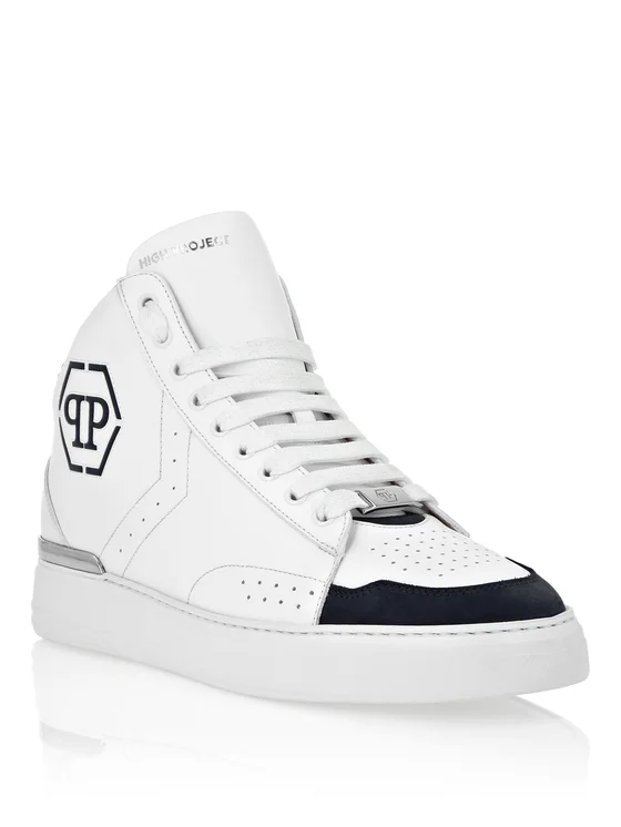Sneaker hi-top di pelle. Scopri di più. Tomaia di nappa e nabuk Parti della tomaia sono traforate Collaretto trapuntato Patch logato cucito sul lato esterno della tomaia Spoiler nichelato inserito tra tallone e intersuola Intersuola spessorata in materiale gommato Battistrada sagomato per un grip ottimale L'interno è foderato in pelle e la soletta è estraibile