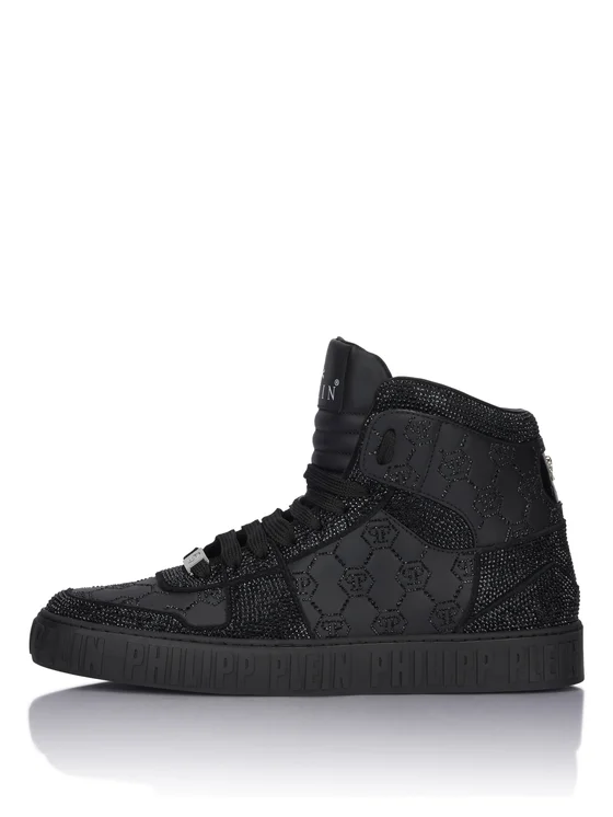 Sneaker hi-top di pelle. Scopri di più. Tomaia realizzata con pelle e suede Applicazioni di cristalli Intersuola spessorata in materiale gommato con lettering stampato a rilievo Battistrada sagomato per un grip ottimale L'interno è foderato in pelle e la soletta è estraibile