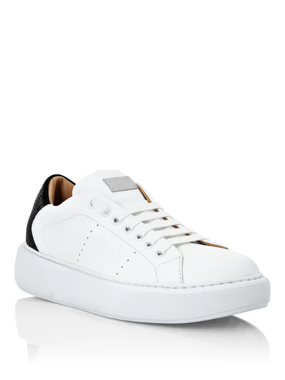 Sneaker lo-top di nappa caratterizzate dal collaretto di suede ricoperto di cristalli e decorato con l'Iconico Skull&Bones. Chiusura regolata da lacci in tinta. La suola è di gomma antiscivolo. L'interno è foderato e la soletta è estraibile.