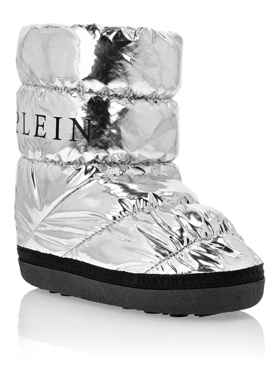 Questi stivali alti piatti portano una dichiarazione futuristica allo stile invernale, combinando un design audace con un comfort accogliente. Perfetto per l'aggiunta di un bordo accattivante per freddo-tempo abiti. La tomaia trapuntata offre calore e un sorprendente effetto volume Bold finitura metallica assicura appello standout Il dettaglio del logo migliora l'identità della firma Interno imbottito offre comfort per tutto il giorno di usura Suola resistente progettata per stabilità e aderenza in condizioni invernali