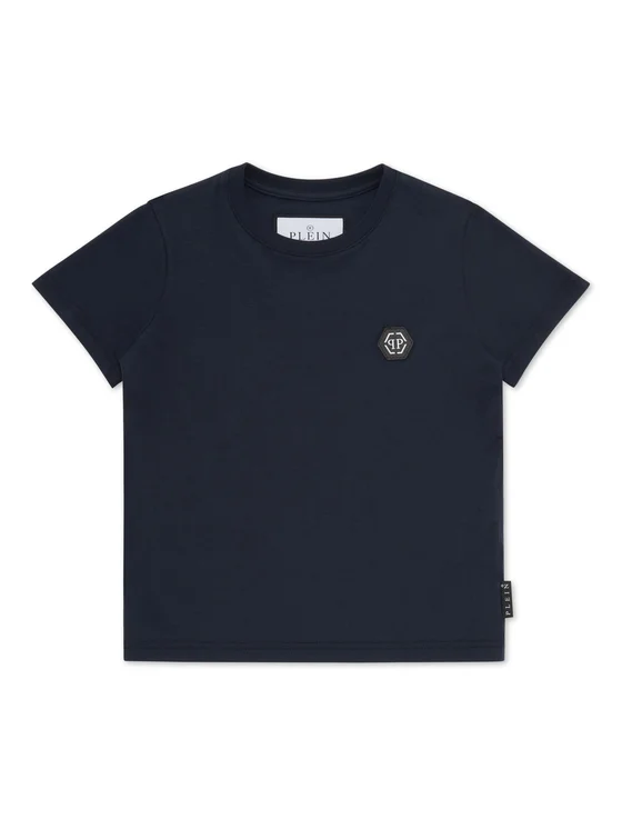 Questa t-shirt girocollo porta raffinatezza giocosa ai look di tutti i giorni, progettata per i bambini che amano il comfort con un tocco di stile. Tessuto di cotone Premium assicura morbidezza e traspirabilità. Taglio classico girocollo per una facile, versatile usura. Sottile dettaglio di marca aggiunge un raffinato accento firma. Perfetto per l'abbinamento con denim o capi sportivi. Un pezzo di base che combina comfort e stile di lusso.